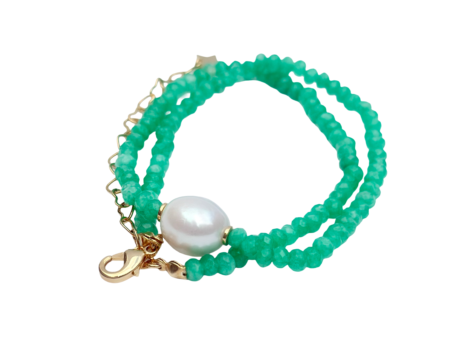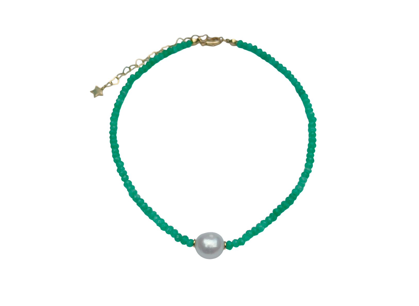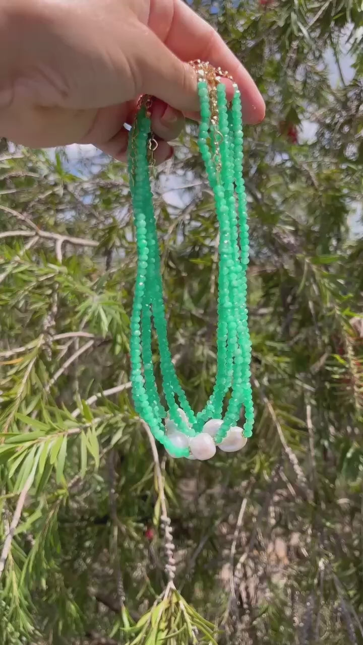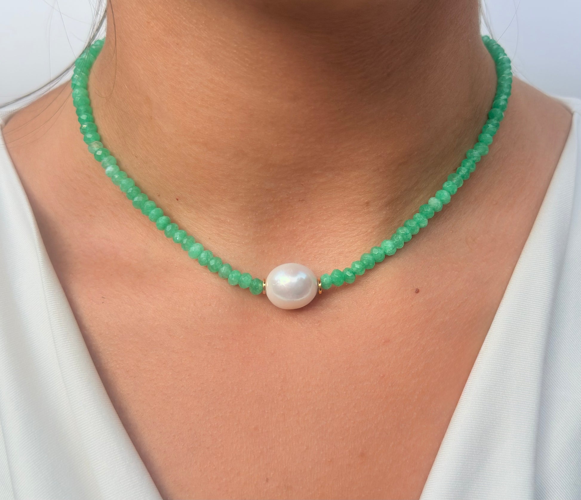 Green Quartz Beaded Necklace with Freshwater Pearl Accent - LIMITED EDITION