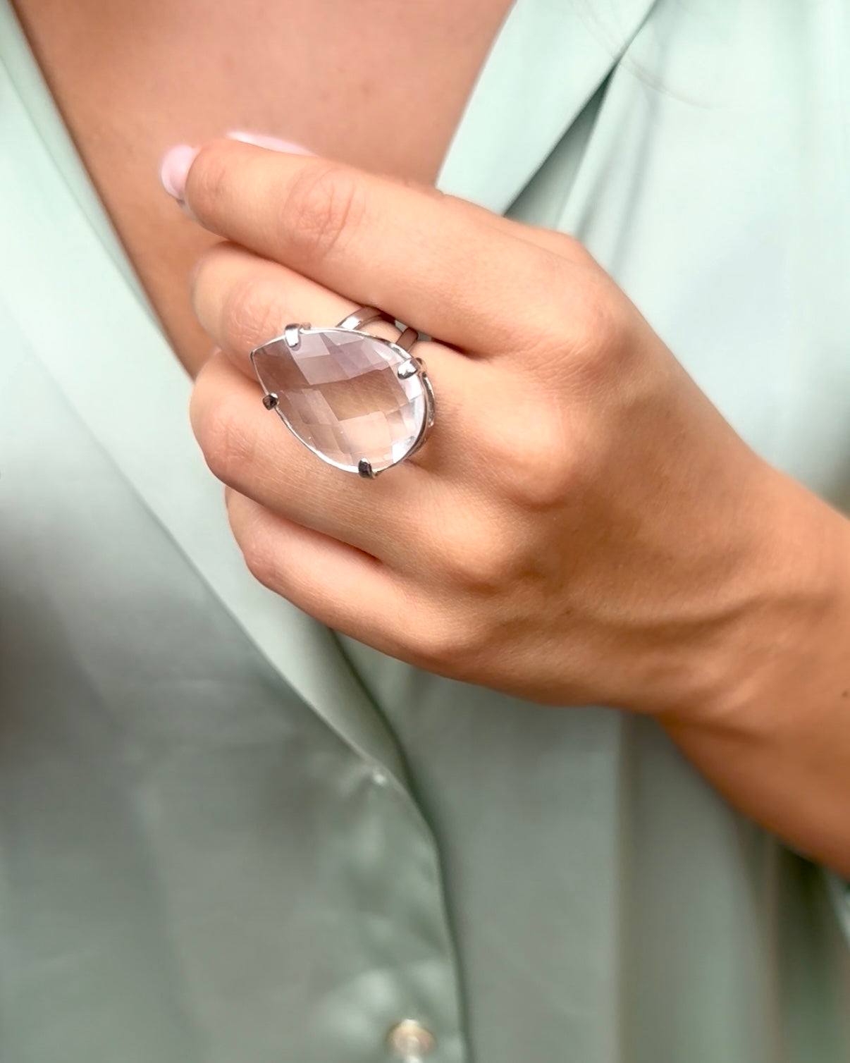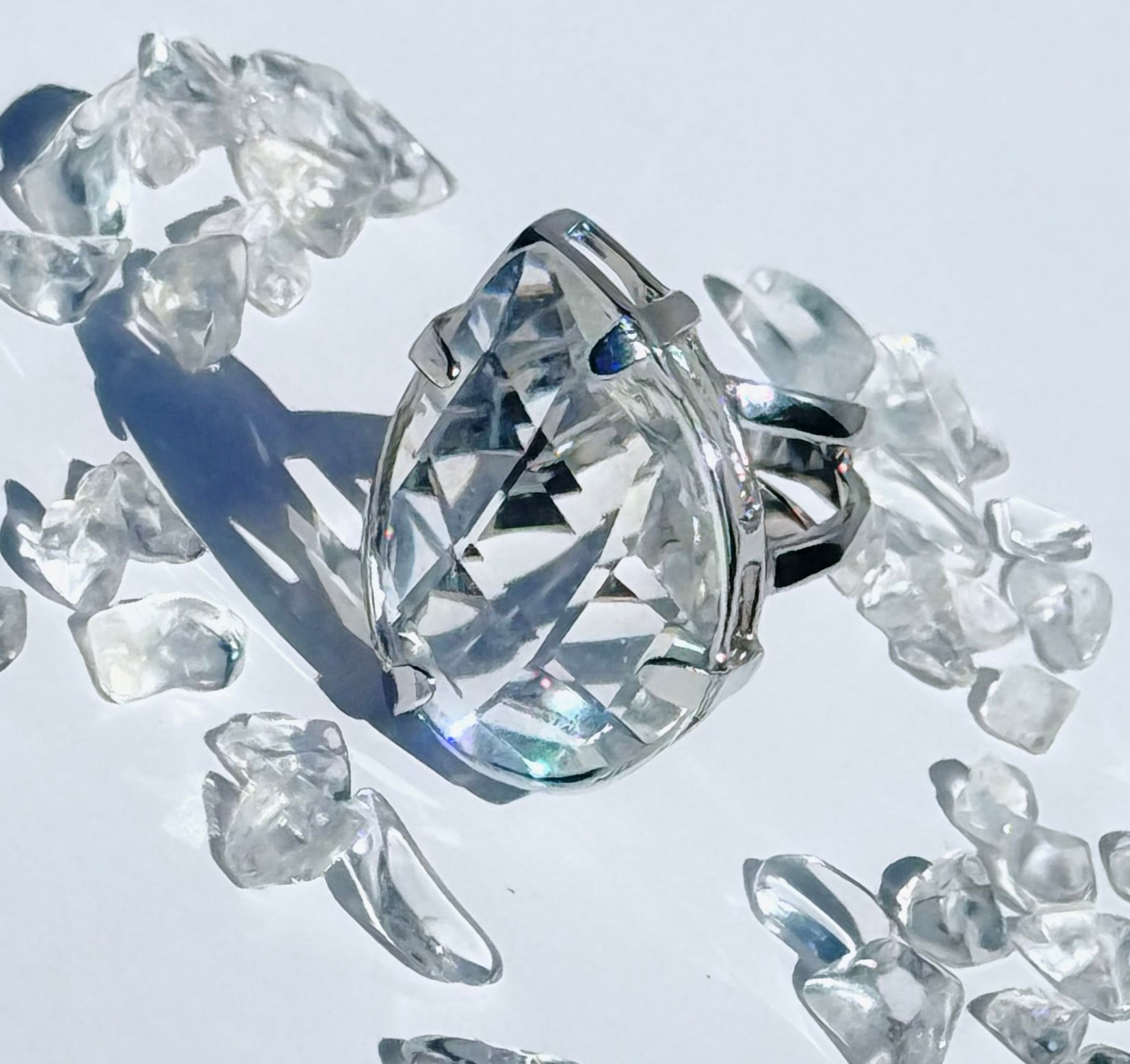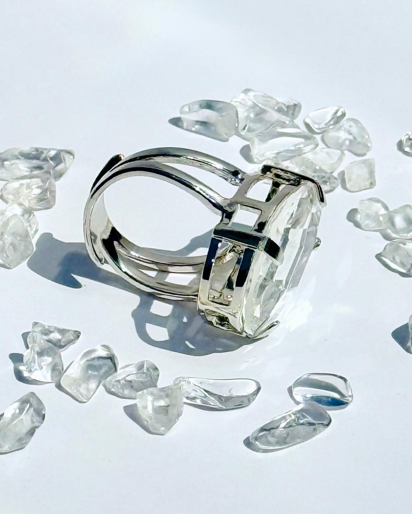 Statement/ Adjustable Ring - Clear Quartz in Rhodium Finish - LIMITED EDITION