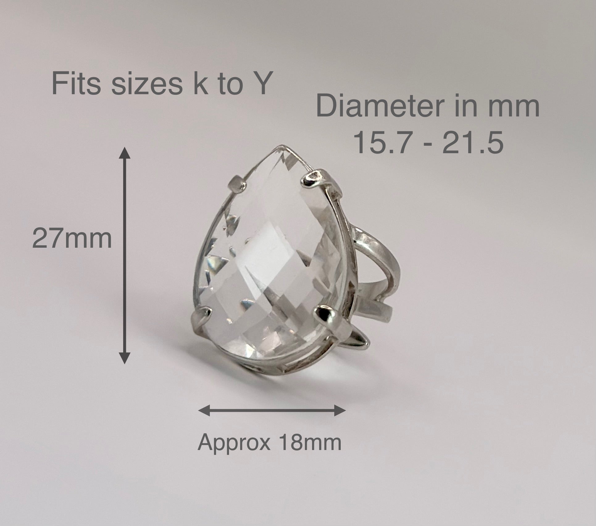 Crystal Teardrop Adjustable ring (each unique in colour, shape & size)