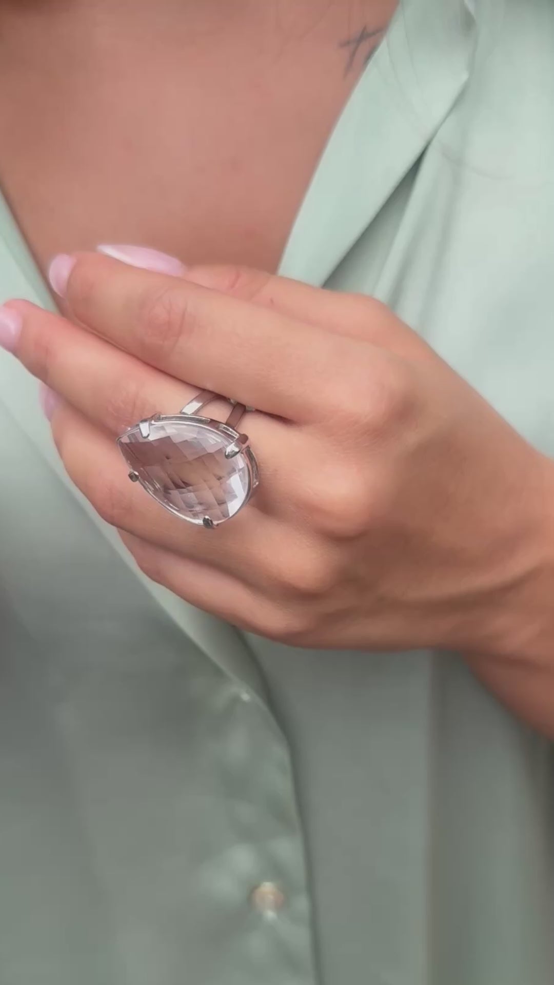 Bonita presents this bold expression of elegance and purpose, the Clarity ring captures the essence of inner strength with every facet. Featuring a breathtaking teardrop-cut clear crystal, its luminous form rests in a radiant rhodium-plated setting - a modern heirloom that reflects not only light but the clarity of intention.