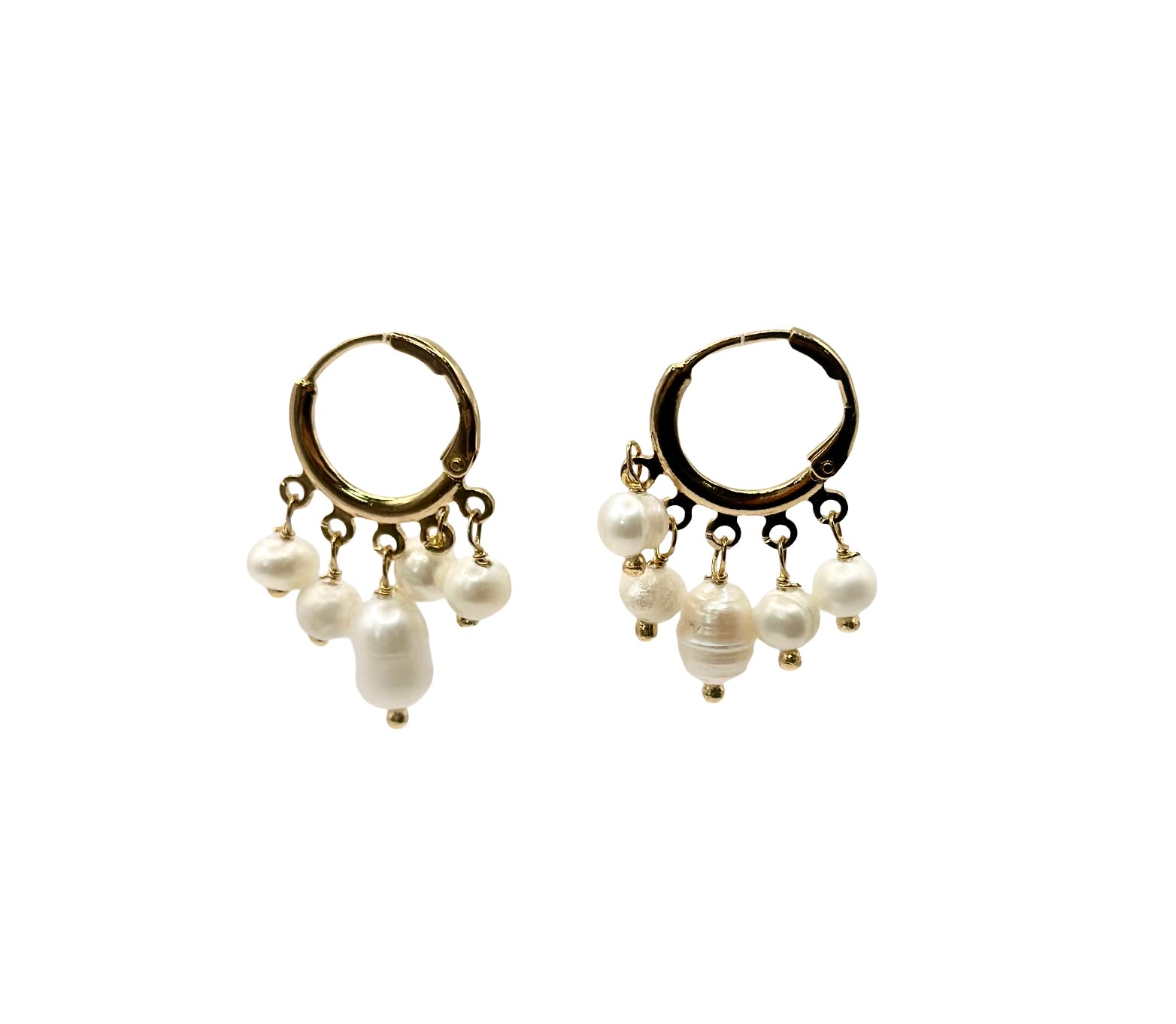 Bonita is proud to present this delicate yet spirited - these hoop earrings feature a cascade of hand- selected freshwater pearls - each one a tiny world of texture, light and natural irregularities. Set on gold-plated hoops with a graceful swing, they dance with your every move - elegant enough for evening, effortless enough for everyday.