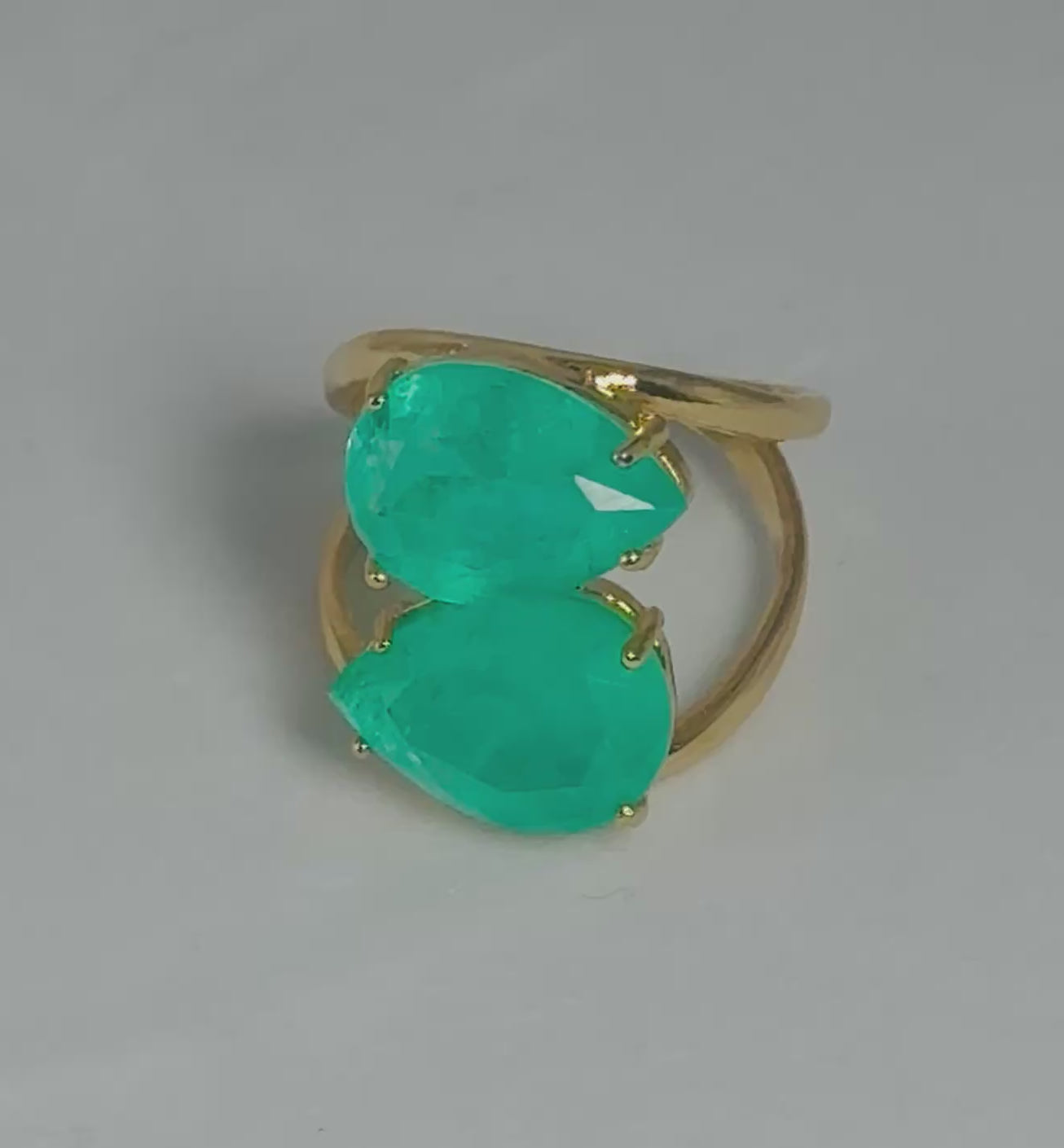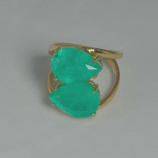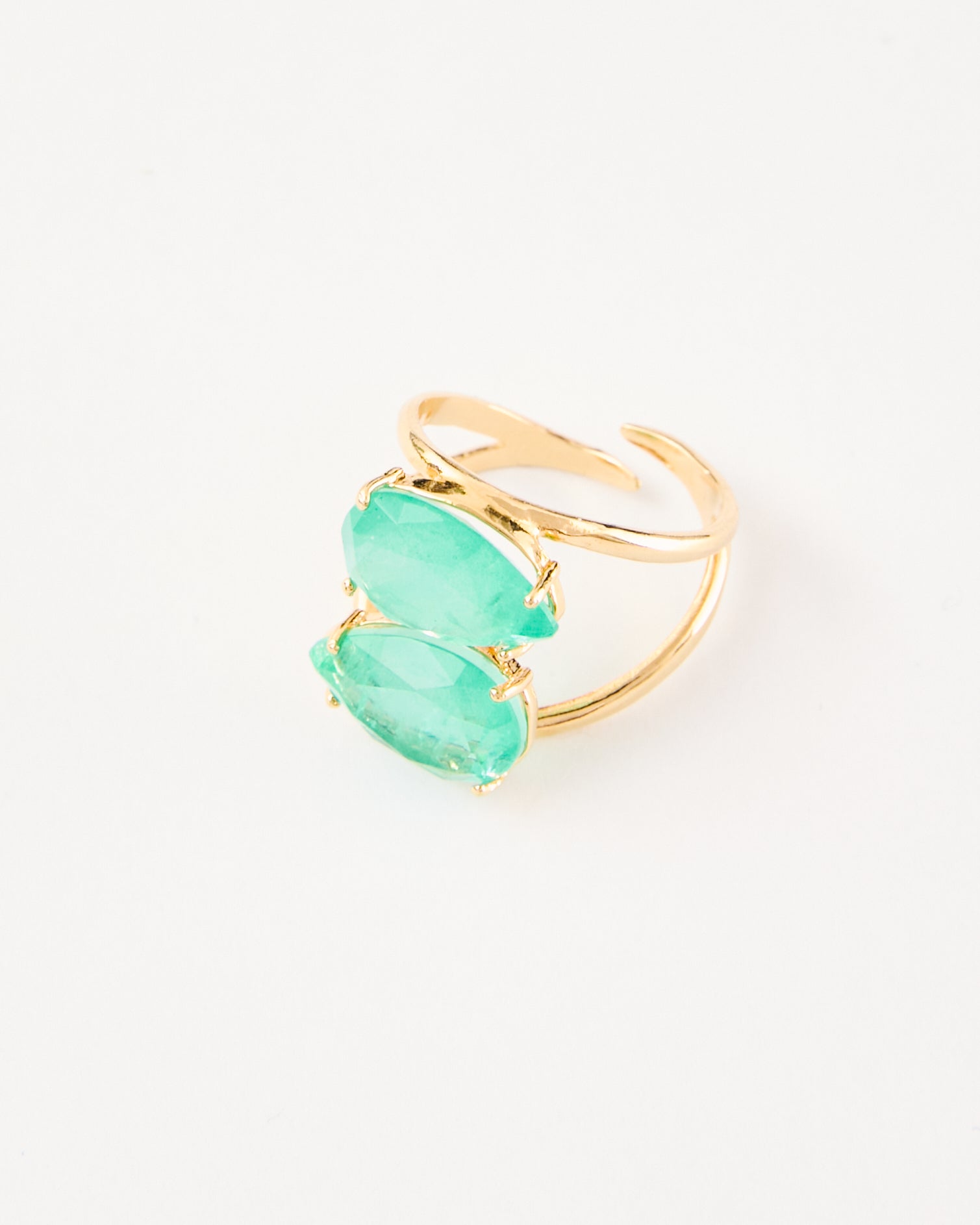 Bonita presents this delicate balance of strength and grace, this ring is a luminous expression of your inner power. Featuring two faceted Green Quartz gemstones set in a modern open silhouette, this adjustable piece wraps the finger in an elegant embrace.