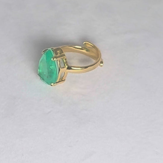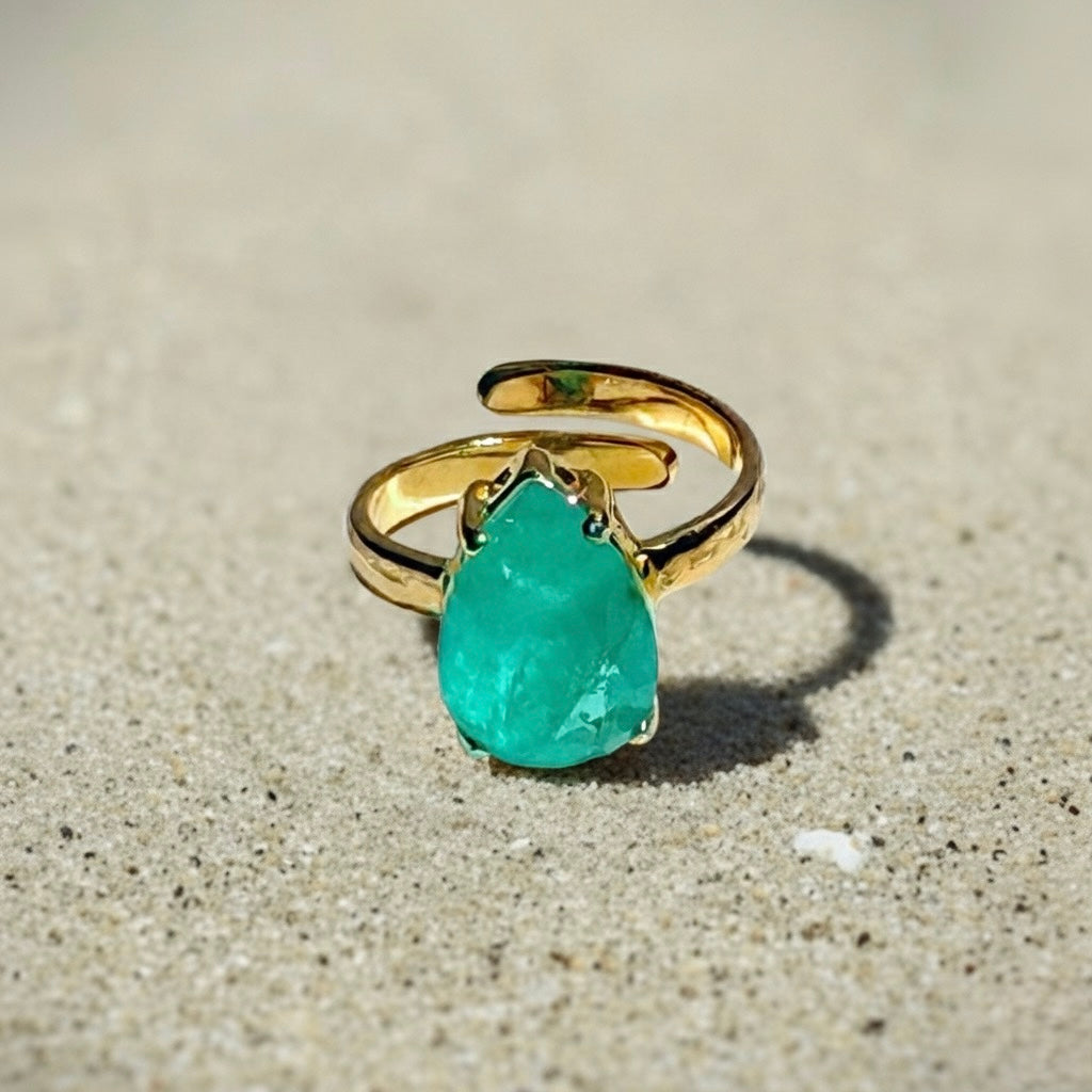 Step into elegance with the Emerald Radiance Ring, a bold creation that carries the essence of Bonita Jewels of Brazil. Crafted in 18k gold plating with a luminous green quartz centerpiece, this adjustable statement ring reflects not only beauty but also the inner journey of resilience and transformation.