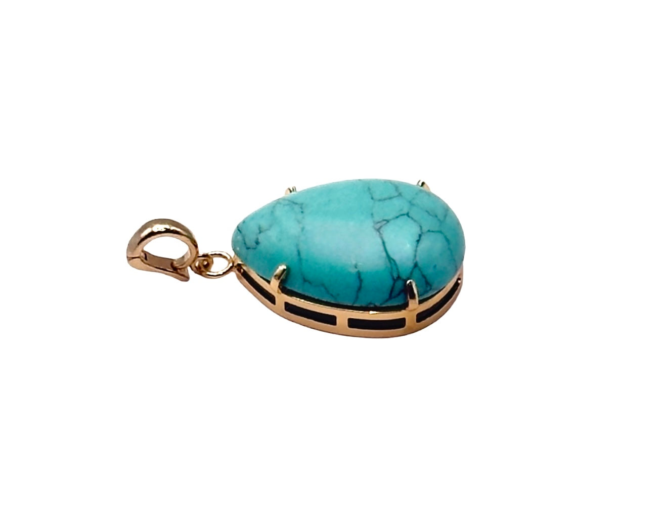 Bonita Jewels of Brazil presents this crafted with intention and elegance, This genuine turquoise pendant features a hand-polished oval gemstone - long revered as a stone of protection, self-discovery and truth. Cradled in a gleaming gold-tone setting with modern open work detailing, this piece is more than adornment - it is a symbol of resilience, transformation and the quiet power within.