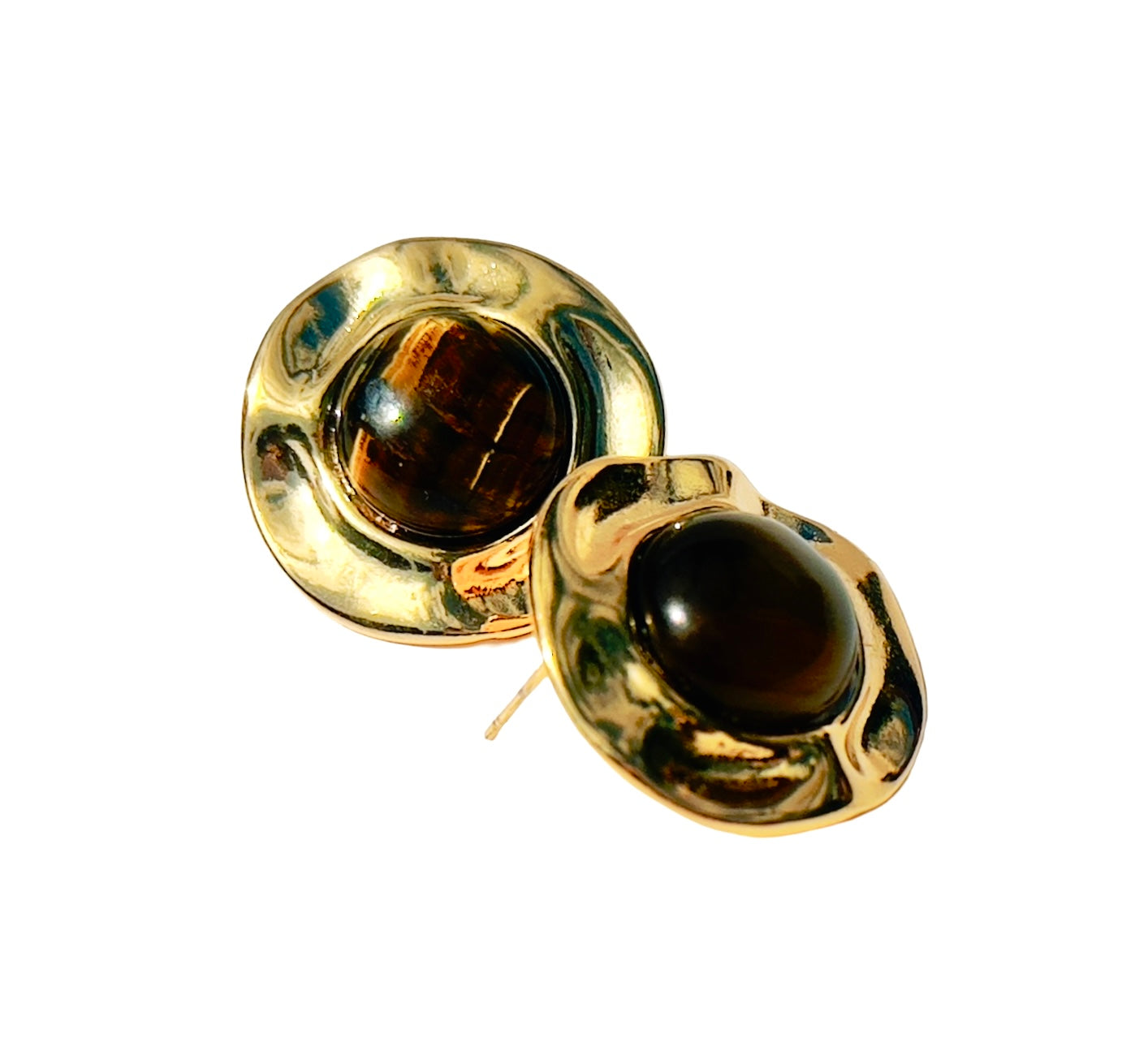 Statement/Organic Tiger Eye Stud Earrings - LIMITED EDITION