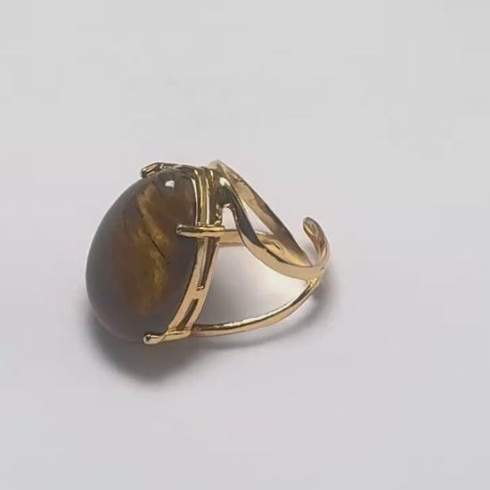 Discover a piece designed to evoke the quiet confidence within. Meticulously handcrafted in Brazil, this striking ring features a polished Tiger’ Eye cradled in a custom 18k gold-plated setting. Each element is shaped by skilled artisans to honour your journey, a reflection of our mission to awaken the wearer’s awareness of their strength, resilience and intuition.