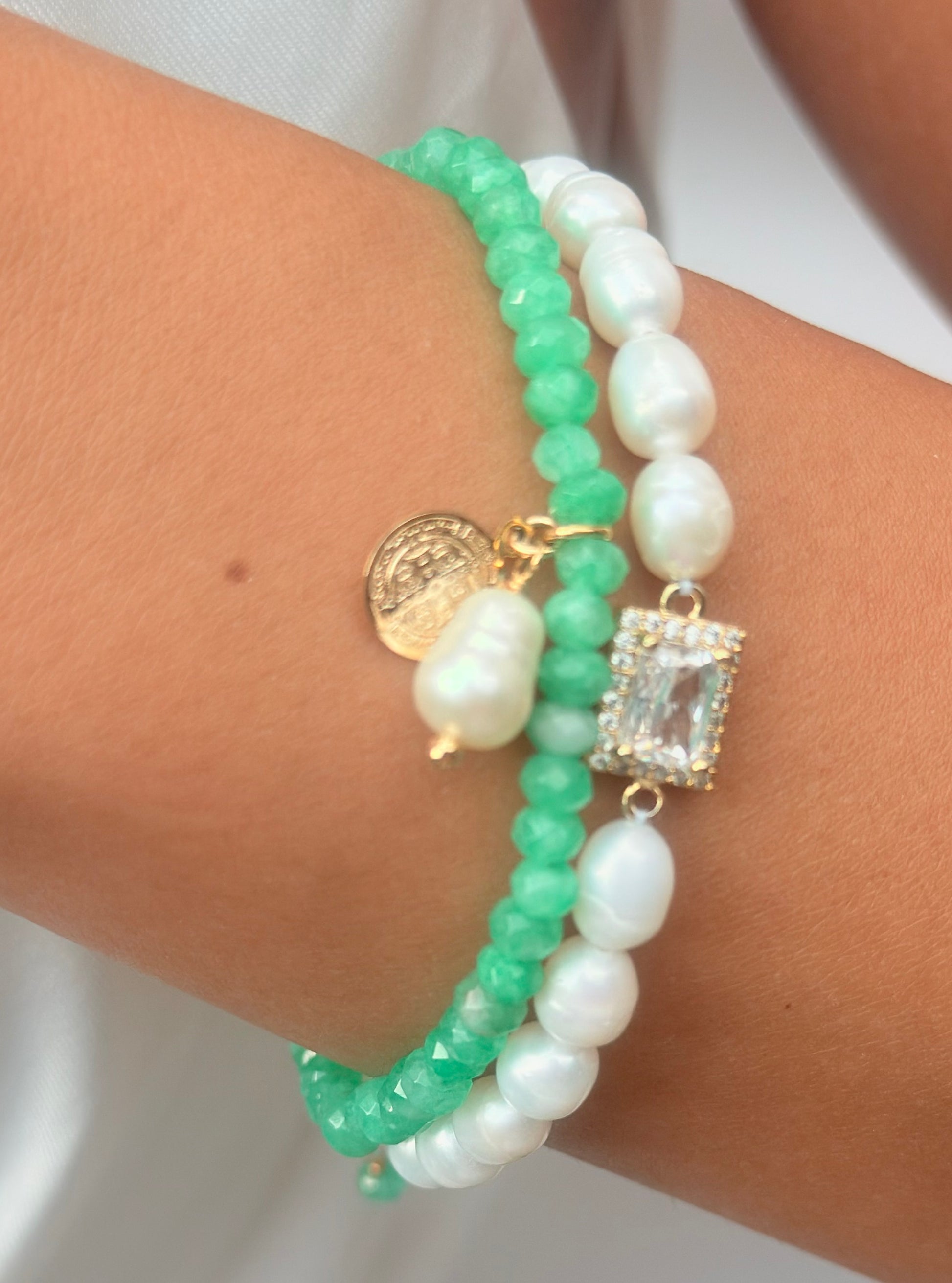 Beaded Green Quartz Bracelet with Fresh Water Pearl - LIMTED EDITION