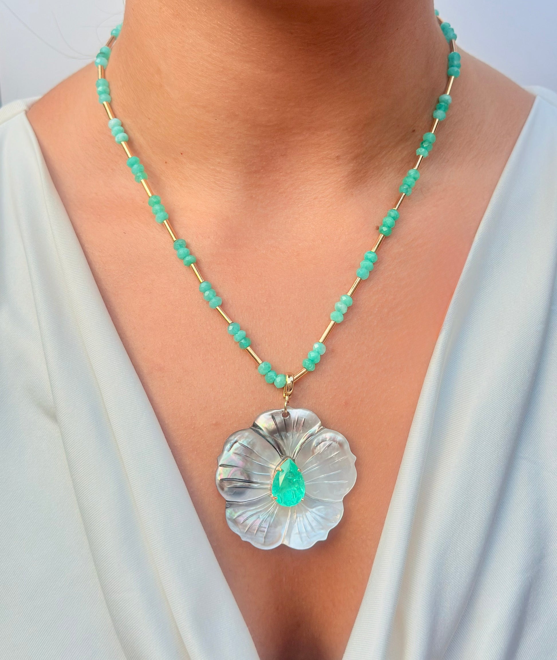 Flower Pendant - Green Quartz & Mother-of-Pearl - LIMITED EDITION